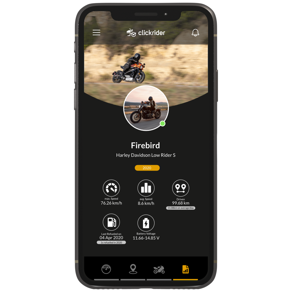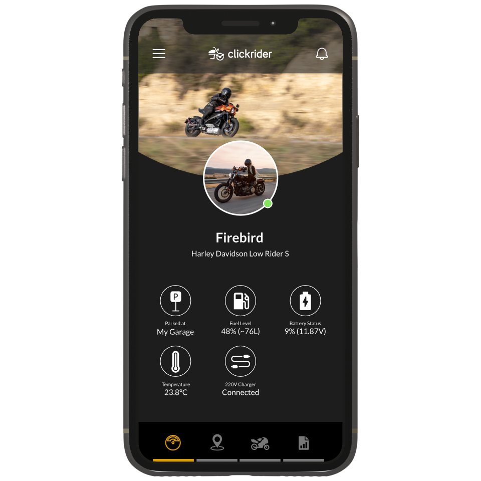 Whether racing, cruiser, motocross, touring or trike. Simply get equipped with the clickrider computer, download the mobile app or log in via dashboard on clickrider.io and benefit from more safety, control and comfort.